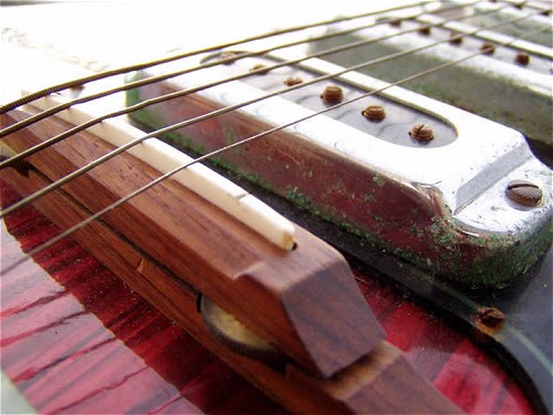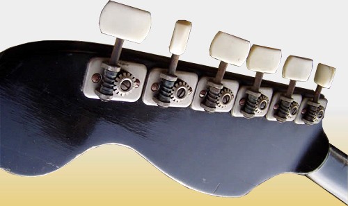 5. Sammlung und "Ostalgie"Bis vor wenigen Jahren waren Elektrogitarren aus der DDR oder anderen Ostblockländern in der alten Bundesrepublik Deutschland quasi unbekannt. Dieses änderte sich erst im Zuge der Wende. Jetzt konnten sich die ostdeutschen Musiker endlich mit den langersehnten West-Gitarren eindecken. Die heimischen Instrumente wanderten dann auf den "Dachboden" oder wurden auf Flohmärkten verkauft und fanden so teilweise ihren Weg in den Westen. Mittlerweile sind diese Instrumente jedoch für einige Sammler interessant geworden. Je nach Zustand werden für so eine alte Ost-Gitarre durchaus Preise bis zu 500 Euro gefordert! Gerade Händler sind da schnell mit "Mondpreisen" bei der Hand. Sammlerwert und Gebrauchswert sind eben zwei Dinge, die nicht unbedingt zusammenpassen! Manchmal werden die alten Instrumente auch von ihren Besitzern im Zuge einer Rückbesinnung oder eines akuten Anfalls von "Ostalgie" wieder hervorgeholt. Häufig wird dann jedoch kein besonders guter Zustand festgestellt und damit beginnen die Probleme. Da die Qualität der verwendeten Bauteile in der Regel nicht besonders hoch ist, machen Verschleiß und Korrosion die Instrumente teilweise unspielbar oder zumindest optisch unansehnlich. Bild 19: Korrosion an den Tonabnehmern einer Migma Elektra Deluxe Eine eventuell notwendige Reparatur gestaltet sich schwierig, da es Ersatzteile von den Herstellern heute natürlich nicht mehr gibt! Ein Tausch gegen moderne Bauteile muß man im Hinblick auf den Verlust an Originalität eigentlich ablehnen und häufig passen diese neuen Teile auch gar nicht. Da ist dann guter Rat teuer! Ein gelernter "Ossi" hat es da mit seinem ausgeprägten Improvisationstalent natürlich leichter, als der sammelnde "Wessi"! Tja, manchmal kann es auch von Vorteil sein, wenn man von "drüben" ist! Wer die Anschaffung eines solchen Instrumentes erwägt, um damit tatsächlich Musik zu machen, der sollte sich sehr gut informieren und die Erwartungen nicht zu hoch schrauben. Ein Korpus aus Sperrholz oder zumindest aus anderen, im Gitarrenbau ungewöhnlichen Hölzern ist bei einigen Instrumenten unter Umständen durchaus zu erwarten. Die verwendeten Mechaniken sind zumindest so gut, daß sie die Saiten in Position, aber nicht lange in Stimmung halten und auch von den Tonabnehmern darf man angeblich nicht zuviel erwarten. Bild 19: Die offenen Mechaniken einer Migma Elektra Deluxe Unter dem Strich wird man heute mit einer neuen Elektrogitarre eines renommierten Markenherstellers im Preisbereich von 200 Euro ein deutlich besseres Instrument erhalten. Investitionen zur Aufrüstung einer alten Ost-Gitarre sollte man sich also gut überlegen. Die Wahrscheinlichkeit, daß man sein Geld zum Fenster hinauswirft ist nicht gerade gering! Anders sieht es natürlich aus, wenn es darum geht, das betreffende Instrument als "Zeitzeugen" zu erhalten. |