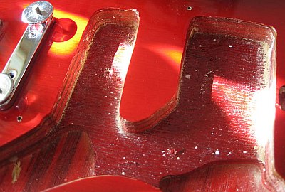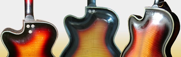 2. Auf dem Holzweg?Über die verwendeten Hölzer in den sogenannten "Ost-Gitarren" kann man unzählige Schauergeschichten hören und lesen. Von Sperrholz oder gar Preßpappe und anderen unschönen Dingen ist da häufig die Rede. "Ist ja auch kein Wunder", so schießt es dem ehemaligen Berufswessi durch den Kopf, "die hatten ja auch nichts da drüben!" Aber wie immer sollte man vorsichtig sein und nicht alles über einen Kamm scheren, denn Ost-Gitarre ist eben doch nicht gleich Ost-Gitarre und bekanntlich bestand der Ostblock nicht nur aus der DDR! Tatsächlich findet man sehr viele Instrumente aus osteuropäischer Fertigung, die dem eben genannten Klischee entsprechen, aber ob das auch für die Instrumente aus dem Musikerwinkel im Süden der DDR gilt, ist die große Frage. Da in den wenigen verfügbaren Katalogen aus den 60er und 70er Jahren nur selten vollständige Angaben über die verwendeten Materialien gemacht wurden, sind wir heute quasi auf einem Auge blind. Wenn eine Gitarre erst einmal lackiert ist, kann man das Holz darunter in der Regel nicht mehr richtig erkennen. Auch Fachleute haben dann oft ihre Probleme, die verwendeten Hölzer klar zu bestimmen, insbesondere wenn mit Furnieren und anderen Dingen gearbeitet wurde. Wie ein Korpus aus Sperrholz (engl. Plywood) von innen aussieht, zeigt das folgende Bild: Bild 4: Eine Herticaster mit Sperrholzkorpus aus japanischer Produktion Der gezeigte Korpus gehört zu einer sogenannten "Herticaster" wie sie in den 60er und 70er Jahren in westdeutschen Kaufhäusern erhältlich war. Interessanterweise wurden sie nicht im Ostblock, sondern in Japan hergestellt, wie im Artikel "Die 'Hertiecaster'-Gitarre der 60er und 70er Jahre" nachzulesen ist. Hätte man auch innen eine dickere Lackschicht verwendet, so würde diese Sparmaßnahme auch auf den zweiten Blick nicht sofort auffallen. Die wenigen Angaben zu den Materialien der Ost-Gitarren, die heute im Internet zu finden sind, stammen häufig von den Besitzern der Instrumente, die aber wohl in den seltensten Fällen zum Werkzeug greifen, um das Holz zwecks Identifizierung freizulegen. Tja und dann gibt es natürlich auch noch die wachsende Schar der selbsternannten "Fachleute", die zwar so ein Instrument noch nie... aber sie hätten gehört, daß... Gerade solche Zeitgenossen werden nicht müde, ihr "Wissen" mit Hilfe des Internet der Welt mitzuteilen! Und der schlechte Sound eines solchen Instrumentes hat natürlich auch einen Grund: "Wenn das Instrument ein kurzes Sustain hat und nur dumpf klingt, liegt das bestimmt an dem Sperrholz aus dem der Korpus gefertigt wurde!" Daß es auch andere Gründe geben kann, wird dabei gerne vergessen, da eine schlüssige Erklärung ja auf der Hand liegt. Man sollte mit der Bewertung solchen Aussagen also sehr vorsichtig sein! Ich habe mit Karl-Heinz Neudel über das Thema Hölzer gesprochen. "Die schreiben do a ganz a schönen Blödsinn!", sagte er zu den Angaben, die zum Beispiel auf Cheesy Guitars zu finden sind. Zumindest die Angaben für die Musima-Gitarren (und vermutlich auch die für andere DDR-Instrumente) stimmen also nicht! Er teilte mir mit, daß bei der "Musima" für massive Elektrogitarren grundsätzlich Erle oder Linde als Korpusholz verwendet wurde. Bei Instrumenten mit einem einfarbigen Finish erhielt der Korpus ein Furnier aus Buche. Instrumente mit Sunburst-Lackierung wurden - wegen der schöneren Maserung - mit Ahorn furniert. Für den Hals wurde grundsätzlich Ahorn verwendet und mit einem Griffbrett aus Palisander versehen. Es gibt jedoch auch eine Quellen, die von eingefärbter Buche als Griffbrett berichten. Da Palisander als Tropenholz importiert werden mußte, ist es durchaus denkbar, daß man sich im unteren Preisbereich gelegentlich dieses Tricks bedient hat. Nachweislich ist das jedoch nicht! Im Hinblick auf die verwendeten Hölzer ist die "böse" Ost-Gitarre aus deutscher Produktion von ihrer Klassenfeindin aus dem imperialistischen Westen also nicht weit entfernt und die Instrumentenbauer der "Musima" waren durchaus in der Lage, gute Hölzer zu erkennen und zu verwenden! |