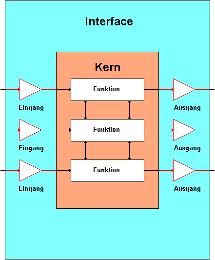 1. Grundlagen1.1. Das SchalenmodellEin Gerät, welches im weitläufigsten Sinne zur Signalverarbeitung dient, kann grob in zwei Blöcke zerlegt werden: Das Interface, mit dessen Hilfe die Kommunikation nach Außen abgewickelt wird und den Kern (engl. Core), in dem die eigentliche Funktion stattfindet. Natürlich kann man sich auch kompliziertere Geräte vorstellen, die über mehrere Ein- und Ausgänge verfügen und verschiedene Funktionen realisieren. Verallgemeinert, läßt sich jedes Gerät in einen sogenannten Kern und das Interface zerlegen, welches den Kern wie eine Schale umschließt und ihn so nach Außen abschirmt. Nach diesem Prinzip sind heute alle modernen integrierten Schaltungen aufgebaut. Es geht sogar soweit, daß Funktionsblöcke in komplexeren Schaltungen ebenfalls über einen eigenen Interface-Ring verfügen und in deren Kernen sitzen weitere Funktionsblöcke, die... Bild 1: Schalenmodell eines Gerätes mit Kern und Interface-Ring Für die Anwendung in der Elektrogitarre ist es ausreichend, sich auf ein einfaches Gerät mit nur einem Ein- und Ausgang zu beschränken. Je nach Funktion ist der Aufbau des Funktionsblocks unterschiedlich kompliziert und teilweise nur von Fachleuten zu verstehen. Wir überlassen ihnen daher dieses Feld und beschäftigen uns nur mit dem Interface, welches für uns schon genügend Herausforderungen bereit hält! Die Schaltungsteile im Interface haben letztendlich zwei einfache Aufgaben. Sie sollen