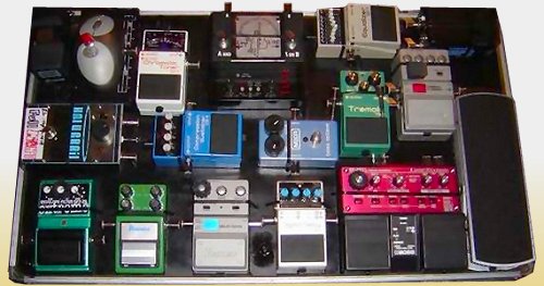 4. Worauf ist bei der Kombination von Effektgeräten zu achten?Die meisten Gitarristen verwenden mehrere Effektgeräte. Da stellt sich zunächst die Frage, in welcher Reihenfolge sie in der Signalkette angeordnet werden? Aus vielerlei Gründen hat sich folgende Reihenfolge etabliert, die auch in den sogenannten Multieffektgeräten in der Regel eingehalten wird: