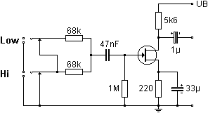 FazitWie gezeigt wurde, verfügt die Mehrzahl der vorgestellten Verstärker über einen Eingangswiderstand von 1MOhm, die damit eine recht gute Anpassung an die elektrischen Eigenschaften einer passiven Elektrogitarre ermöglichen. Bei den Effektgeräten sieht die Situation etwas anders aus. Die meisten Geräte besitzen einen Eingangswiderstand von 470kOhm und dämpfen damit die "Höhen" der Elektrogitarre etwas stärker als die Eingänge der Verstärker. Bei älteren Effektgeräten sieht es deutlich schlechter aus. Hier kann die Tonabnehmerresonanz durch einen sehr kleinen Eingangswiderstand teilweise deutlich unterdrückt werden. Eine vergleichbare Situation ergibt sich bei passiven Einschleifwegen von Verstärkern. Auch hier kann eine schlechte Anpassung zu Höhenverlusten führen. Elektrische Abhilfe läßt sich leicht schaffen, indem zum Beispiel das Signal der Gitarre durch einen Impedanzwandler mit hochohmigem Eingangswiderstand gepuffert wird. Eine vergleichbare Schaltung läßt sich auch zur Erhöhung der Treiberleistung von ungepufferten Einschleifwegen nutzen. Wer über ein wenig elektronische Bastelwut verfügt, kann hier mit einer handvoll Bauteile für kleines Geld schnell Abhilfe schaffen. |